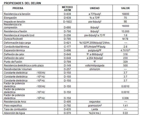 Vale acotar que el delrin resiste el contacto con sustancias básicas, neutras y mediamente ácidas.